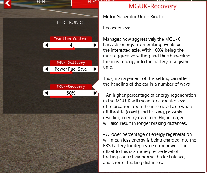 Oui mais c est bizarre : la porsche est aussi une lmdh et sur celle ci je peux regler la puissance de l energie délivré. De mémoire, dans le menu garage, il y a une parametre que l on peut changer de 0 a 4. --------------- Ventes de matos Simracing |
