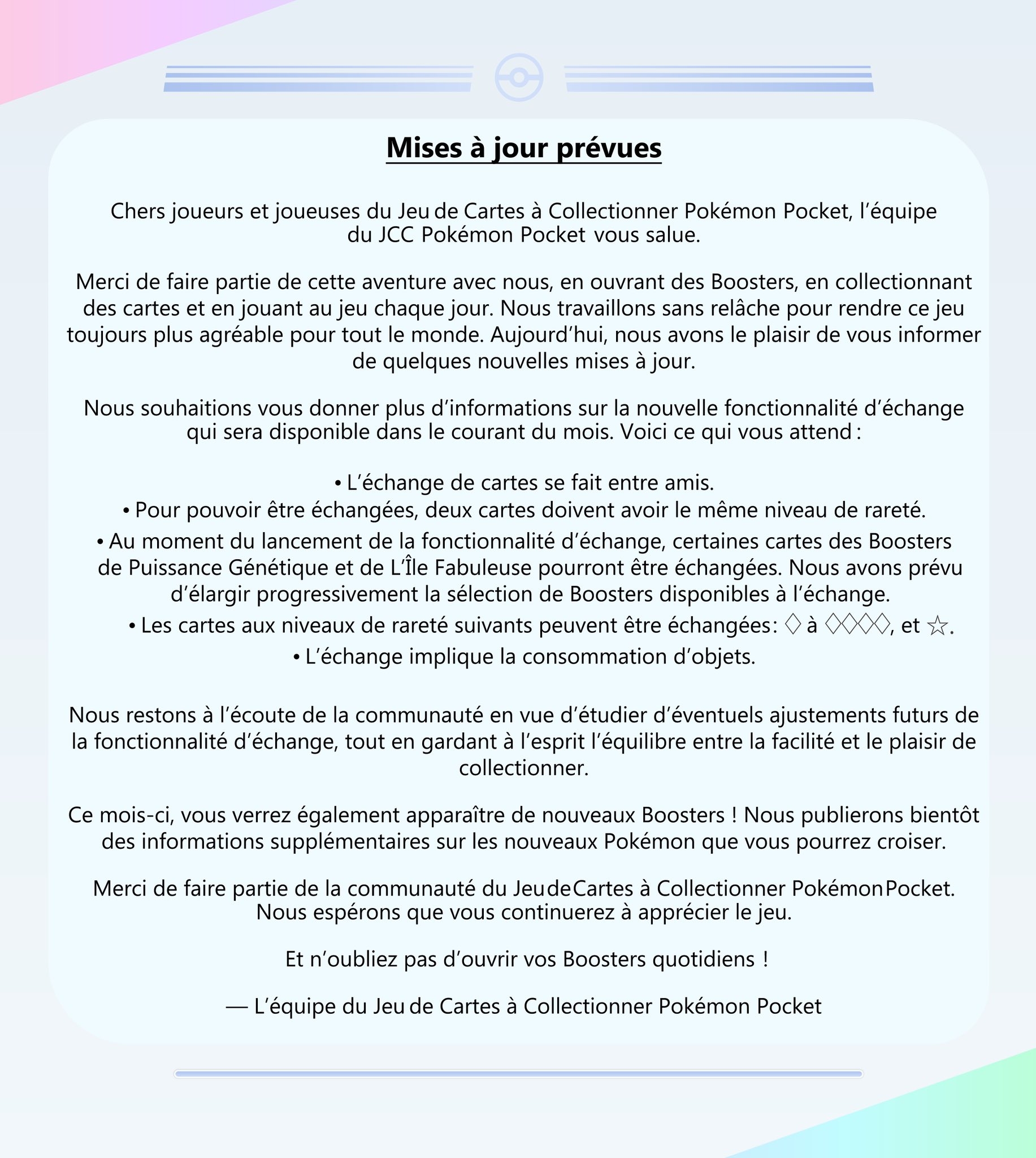 | Auteur | Sujet : Pokemon Pocket |