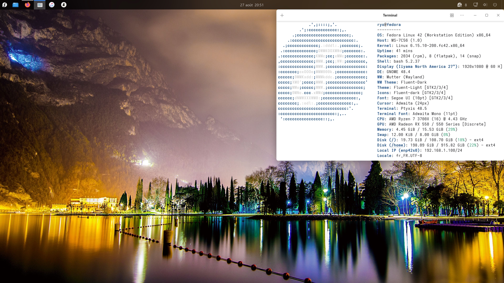 ryoo | Faudrait que je regarde pour fedora, je dois avouer que j'ai bêtement suivi quelques vidéos qui montraient comment personnaliser gnome |