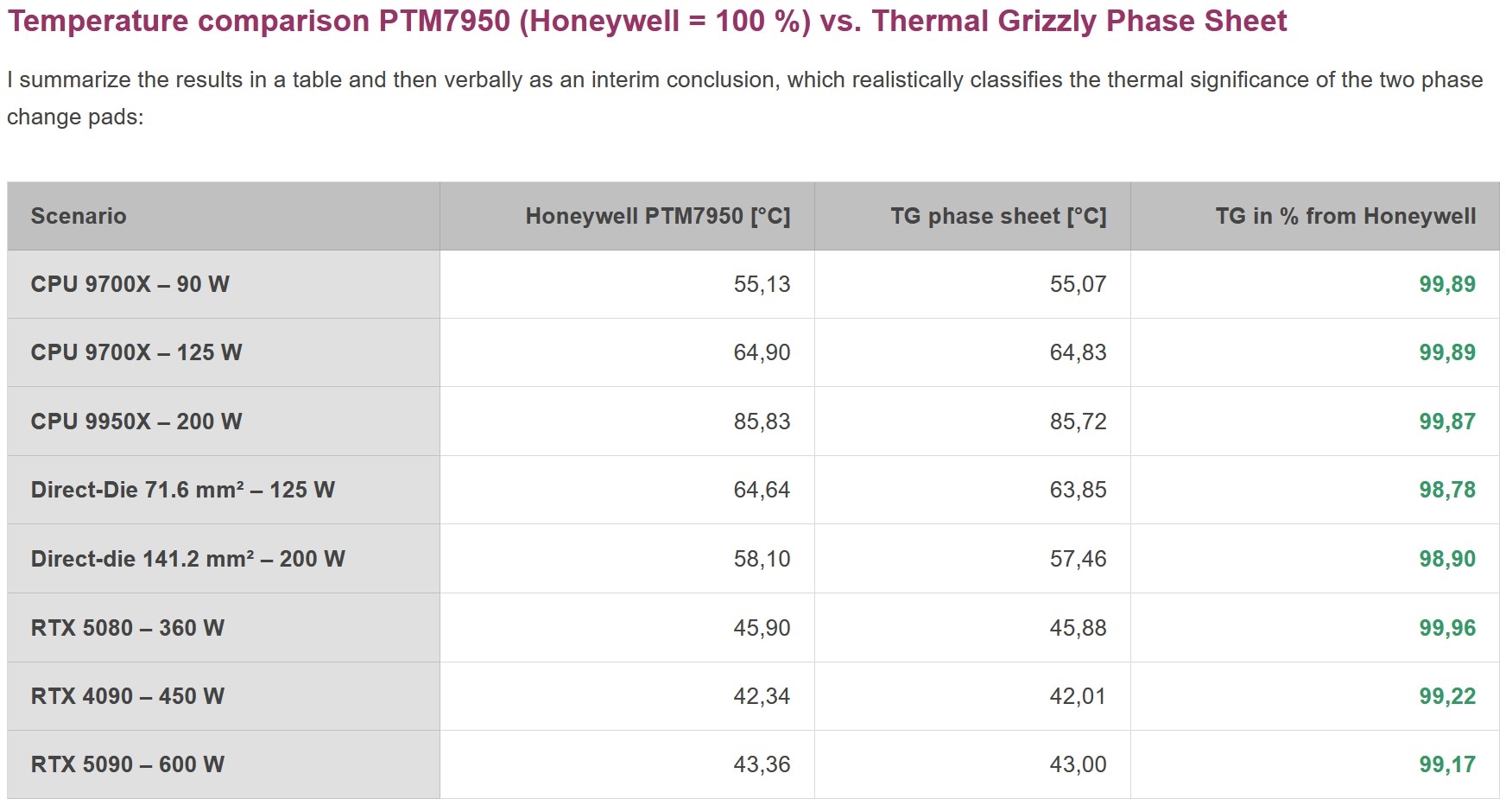 Résultat Thermal Grizzly Phase Sheet PTM vs Honeywell PTM7950 en une image: