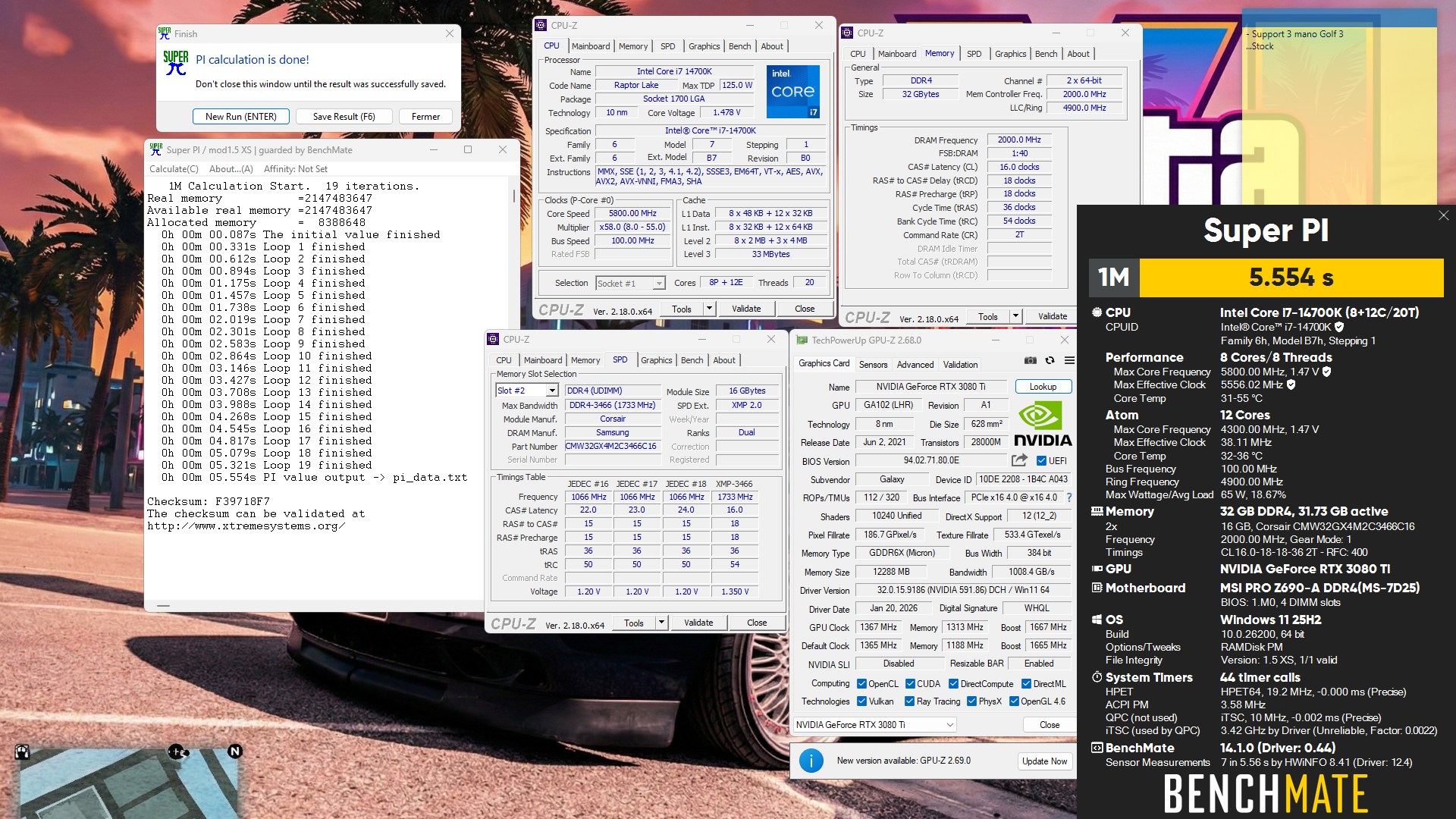 INTEL Core i7 14700K @ 5,80Ghz - CORSAIR Vengeance RGB PRO @ 2000Mhz CL16 - EVGA RTX 3080 Ti FTW3 ULTRA @ 2100Mhz