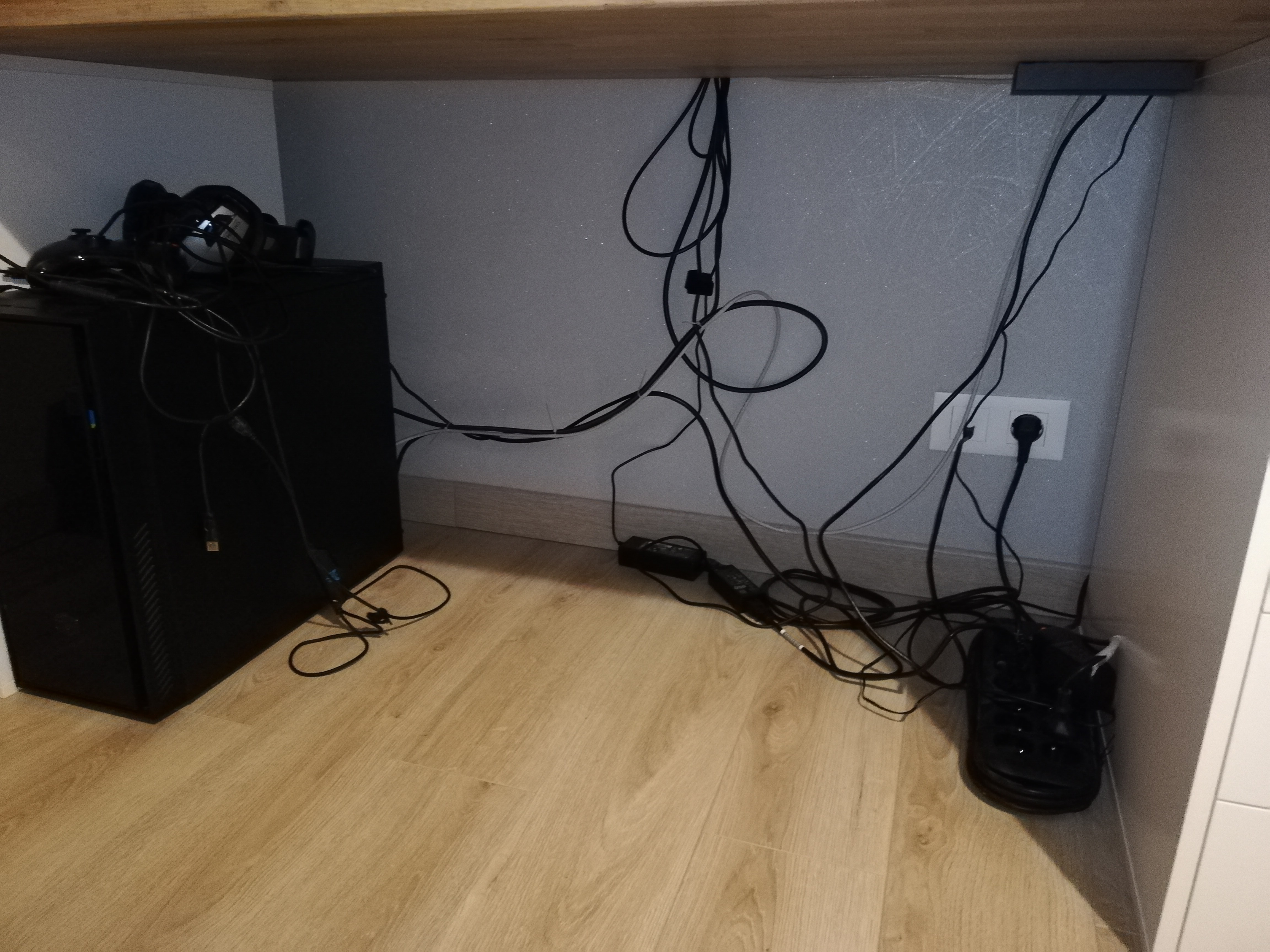energiez | le plus simple et le moins cher pour les cables sous le bureau, c'est ca ! Tu reprends la même couleur que ton mur ou que tes meubles, et tu fais un faux fond avec le bordel de cable caché derrière. Rapide, et bien plus simple en cas d'ajout de nouveau cable, ou pire suppression ! Message cité 1 fois Message édité par energiez le 18-01-2022 à 21:42:44 --------------- Mon feed-back - tt.mereville.free.fr |
