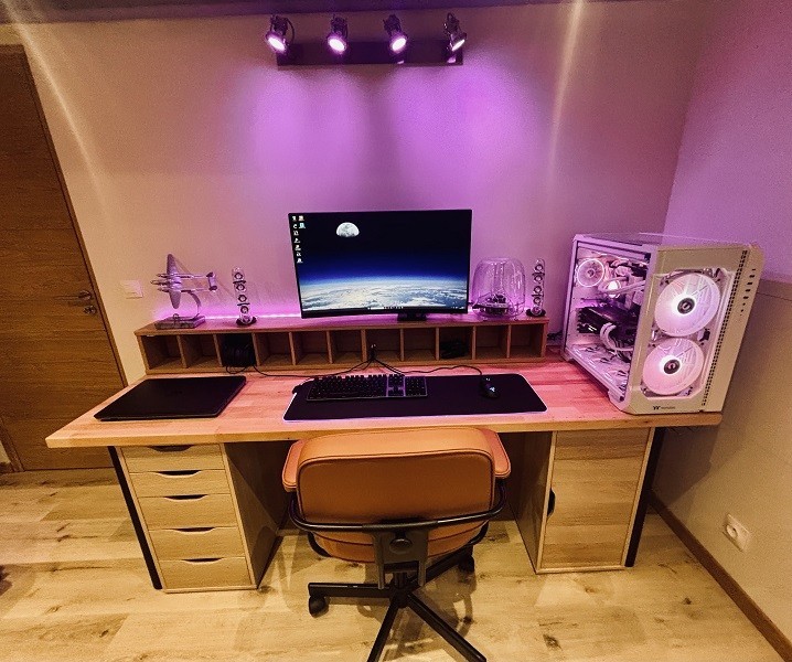 C'est un plateau Ikea, avec un léger ponçage et un traitement à l'huile, ce qui le rend un peu poil plus foncé. Et un grand merci à Yeam pour ta reco sur le switch USB, c'est pris et ça fonctionne parfaitement ! |