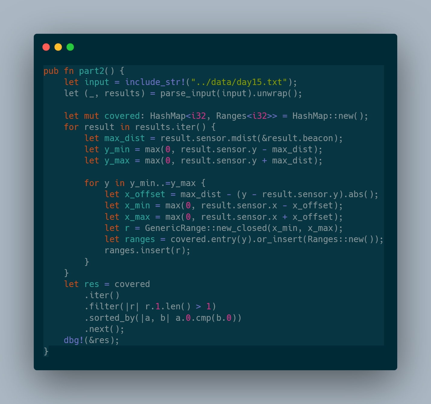 masklinn í dag viðrar vel til loftárása | Bon à nouveau pas super fier de mon AOC, partie 1 j'ai fait ça con, naturellement ça se traduit par un runtime d'une semaine à scanner linéairement pour la partie 2 Donc j'ai fini par trouver une solution qui tourne en 9s