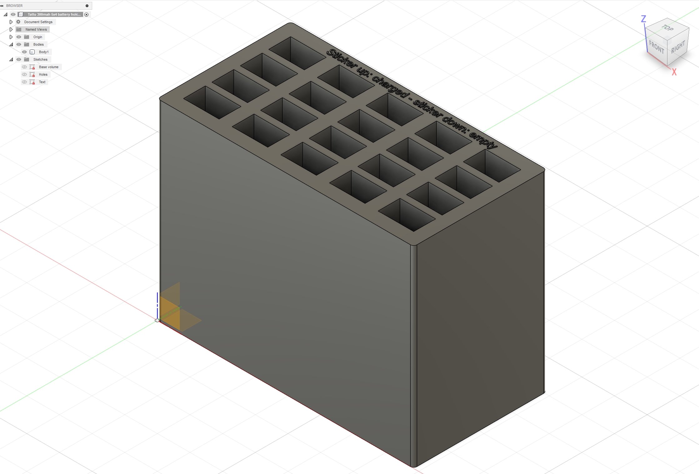 Jubijub Parce que je le VD bien | I'm still worthy ! Mes souvenirs lointains de CatiaV5 sont toujours là Je viens de me créer un boitier à batterie de drone 1s (les petits sticks à la con, ça dure 2min30 donc il en faut pas mal). Rien de compliqué, juste un bloc avec des alvéoles. La ça imprime, on va voir ce que ça donne Message cité 1 fois Message édité par Jubijub le 03-05-2025 à 17:41:22 --------------- Jubi Photos : Flickr - 500px |