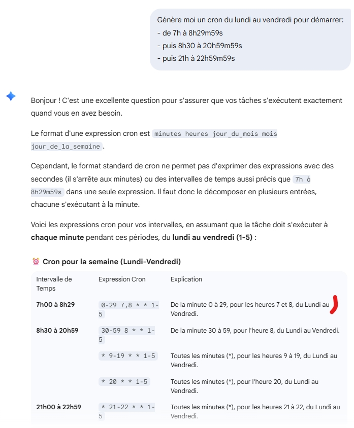 Ceci dit, à sa décharge, il m'a proposé un découpage par ligne et heure qui était juste, mais sa première proposition était erronée. |