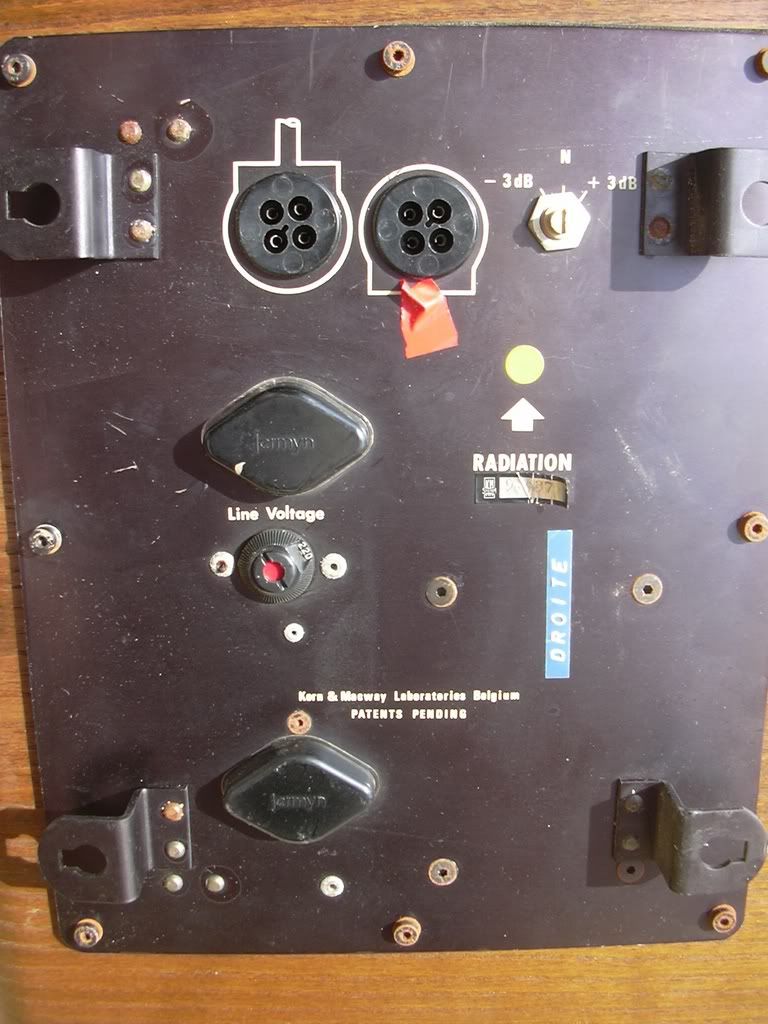 casimir84 | Bon, ça ne pouvait plus durer comme ça ! Comment ? Monsieur Muzah contestait ma suprématie de grand accumulateur d'appareils en tout genres ? C'est donc très courroucé que je me rendis en ce radieux matin en un lieu connu de moi seul et que j'usais de toute ma force de persuasion ! -"Dis, ce truc, ça fais combien que ça traine là dessous ? Et celui là, le client ne l'a jamais réclamé ? Bon tu peux plus bouger là, faut faire du vide ! Profite, j'ai la fourgonette devant la porte ..." Et moi, bon prince de rapatrier ces m...des à la maison ! Du coup je ne sais plus où les mettre. Mais ça valait la peine de se fare suer un peu Tout d'abord honneur aux vieilles dames extra terrestres : Des enceintes Belges (si, si, je vous assure !) Amplifiées et bizarrement asservies pour créer un effet holographique. Ce sont des Korn & Macway, la marque deviendra ensuite Servo Sound.