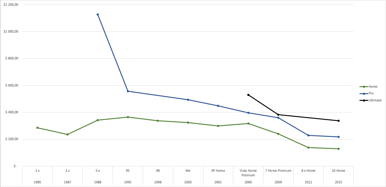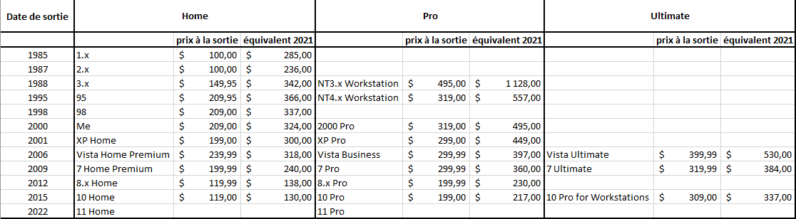 Mais bon, quand on y regarde de plus près, la différence de prix n'est pas non plus énorme (Vista 239$ vs. XP 199$ : 40$ d'écart). Pour les versions 95 et 98, j'ai pris uniquement les premières éditions à la date de sortie. Message cité 1 fois Message édité par nex84 le 15-07-2021 à 10:46:58 --------------- #TeamNoBidouille || Come to the Dark Side, we have cookies || Mangez 5 fruits et légumes par an ! || Le digital, c'est les doigts |