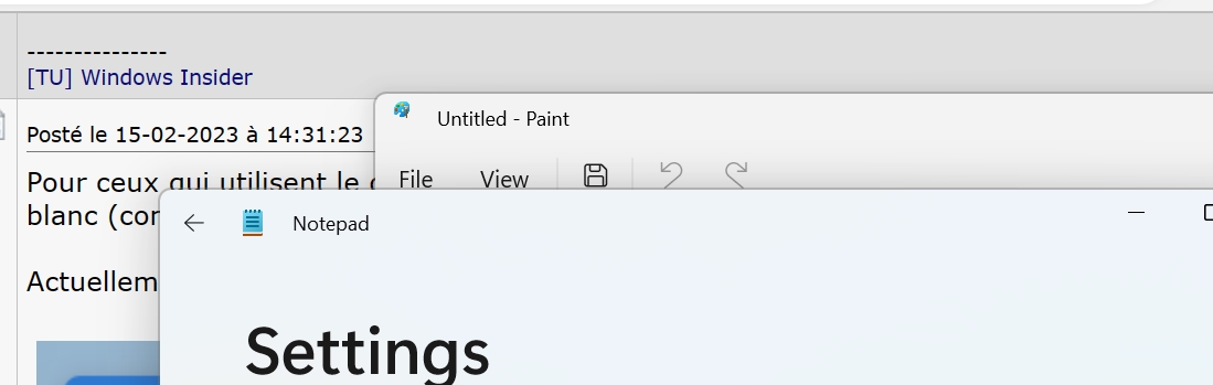 tistou77 Geek Inside!! | Pour ceux qui utilisent le dernier W11 Insider, vous avez vu si MS a mis le titre dans Notepad, Paint, etc... en blanc (comme tout le reste de Windows) ?