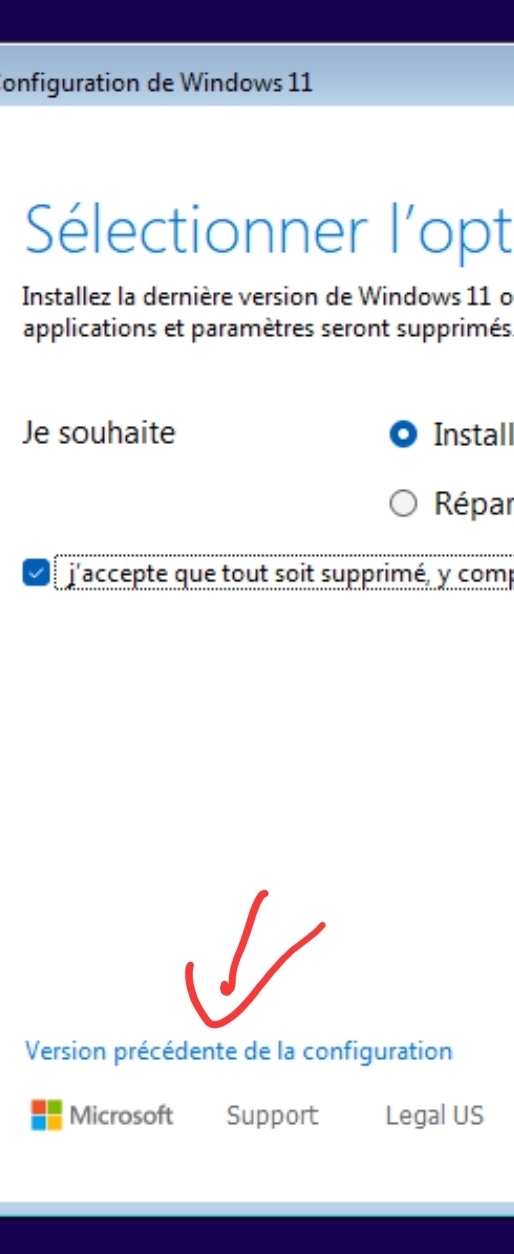 Sinon beaucoup plus simple, c'est de choisir " version précédente de la configuration" au début. Si j'ai un disque non vierge je clique dessus. --------------- écrits sérieux, pas sérieux : https://www.raybrunner.eu |