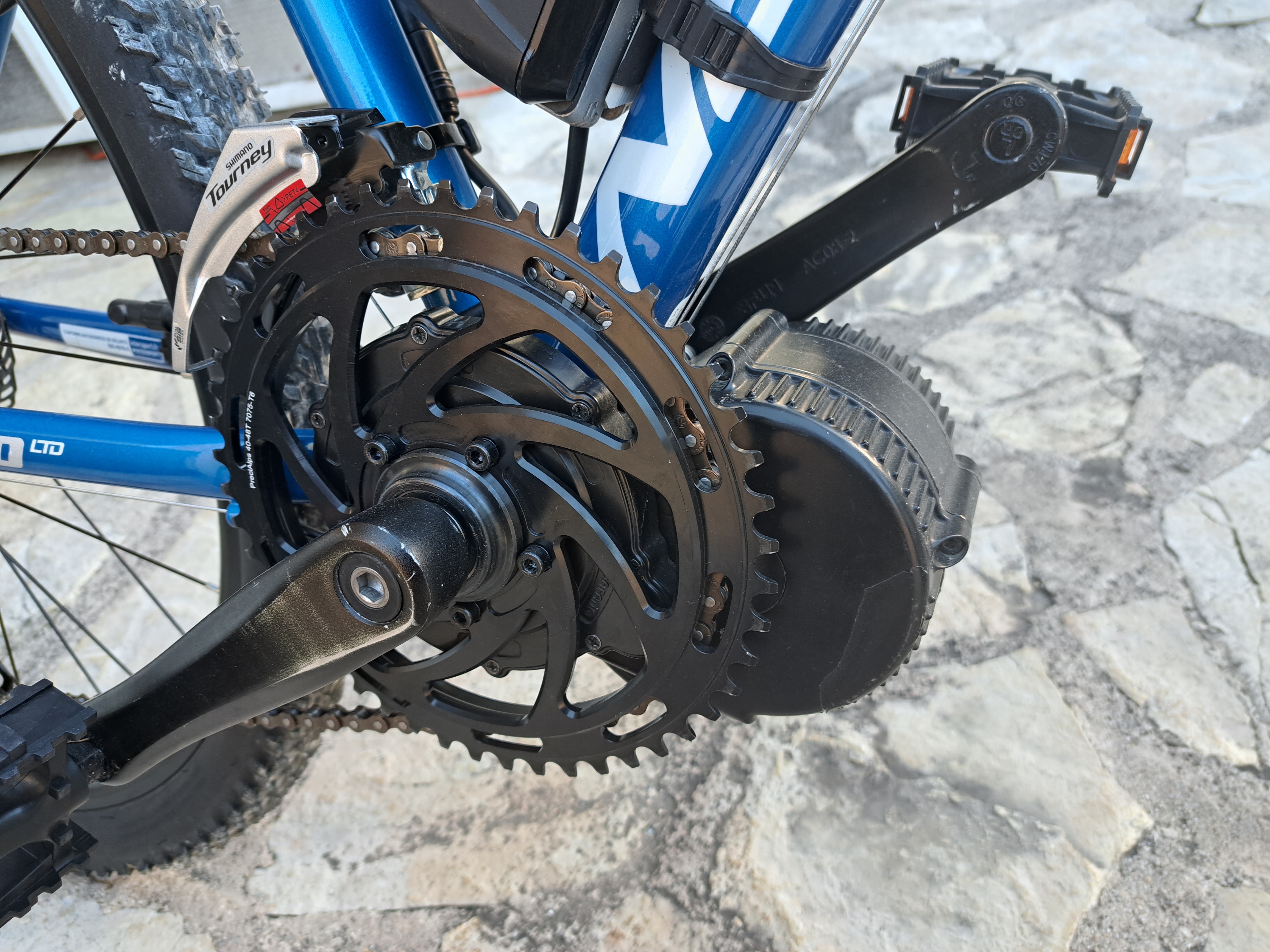 Shaad | Pour info: l'équipe de PreciAlps travaille sur de nouveaux plateaux pour les moteurs Bafang, notamment du 40 dents compatible avec les chaînes 12 vitesses Shimano.