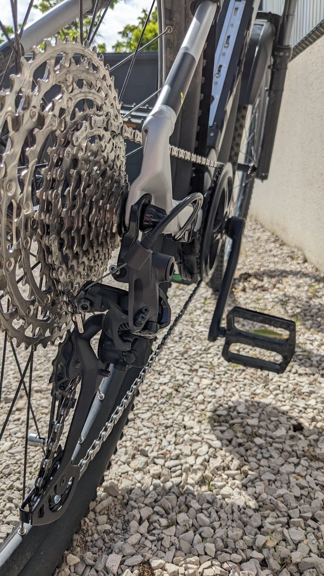 Pédales à remplacer. J'ai reçu des Shimano double-face : un côté plat, un côté avec cale. Bien adaptées à mon usage polyvalent de ce vélo (VTT / Gravel / Route).