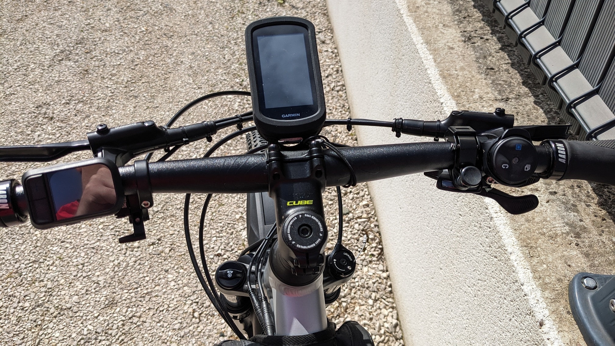 Au centre : GPS Garmin Edge Explore 2 : https://www.nencinisport.it/fr/garm [...] re-2.html. Dans sa housse de protection. Excellent rapport qualité prix pour mon usage mixte VTT / Gravel / route sachant que j'ai déjà un écosystème Garmin.