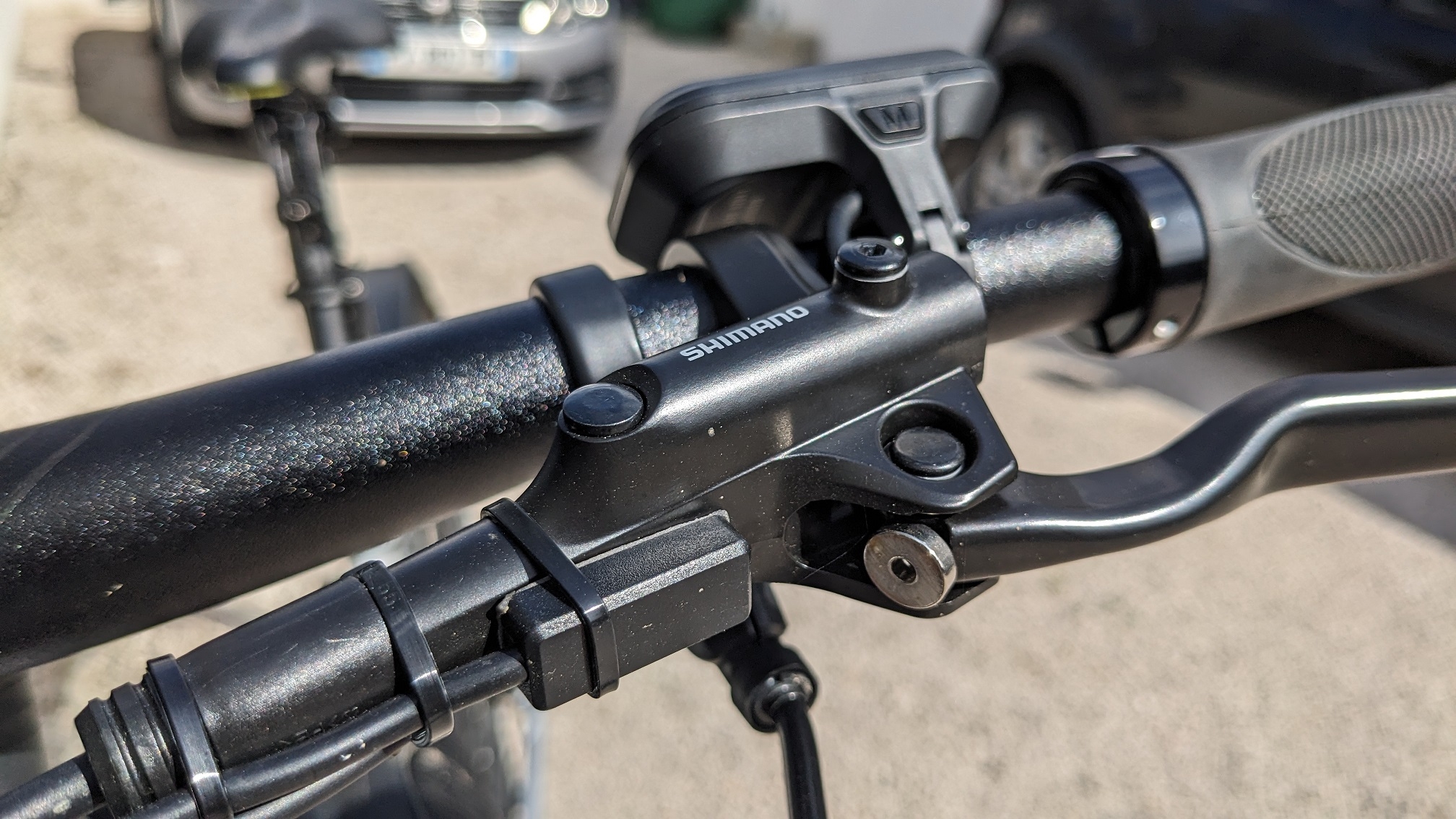 Il faudra toutefois que je le relève un peu pour bien l'avoir dans mon champ de vision quand je suis sur le vélo. J'espère juste que les 2 boutons de vitesse seront toujours aussi accessible. C'est un peu la limite de ce genre d'afficheur/commande tout-en-un : difficile de configurer finalement à la fois la position de l'écran et des commandes.