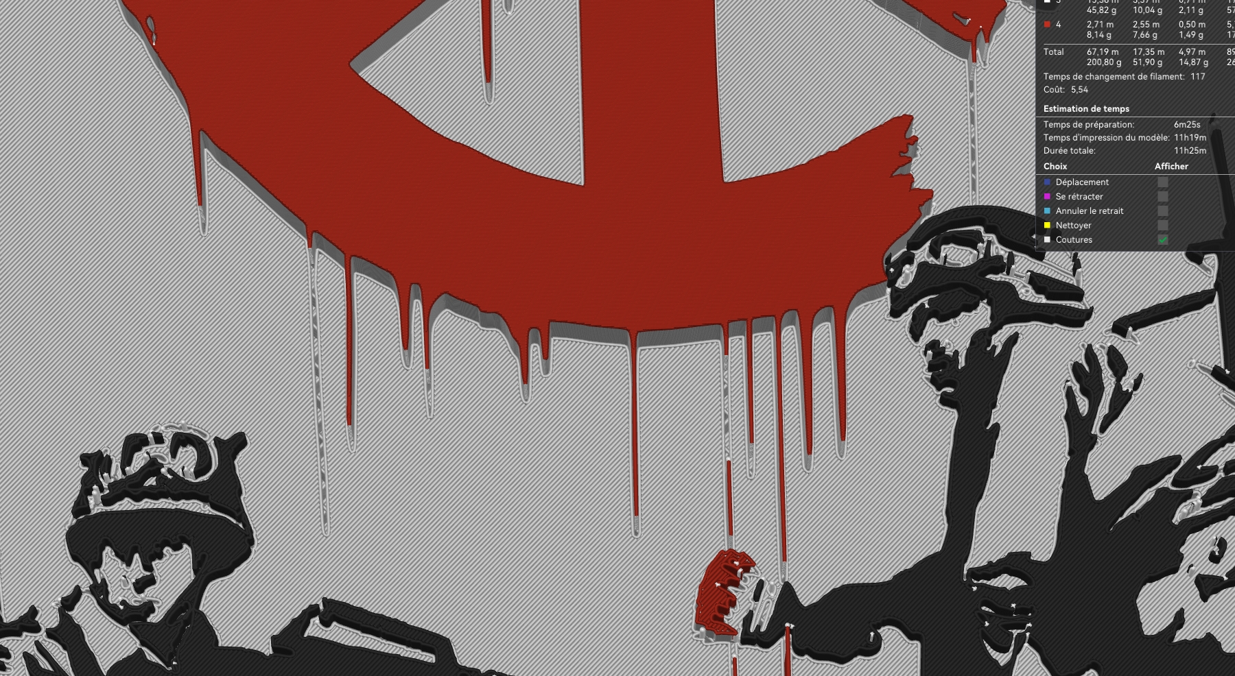 CharLee | J'aurais besoin de vous messieurs J'ai choppé un vulgaire stl sur Maker World Quand je bosse l'aperçu pour le coloriser, tout va bien : Mais dès que je tranche le plateau, ça merdouille au niveau des coulées de rouge : Vous pensez que je peux lancer le print et que ça sortira bien, ou faut que je change quelque chose ? Message édité par CharLee le 04-11-2024 à 23:45:42 --------------- Compte Photo : https://www.instagram.com/charlee_ph0tography_/ |