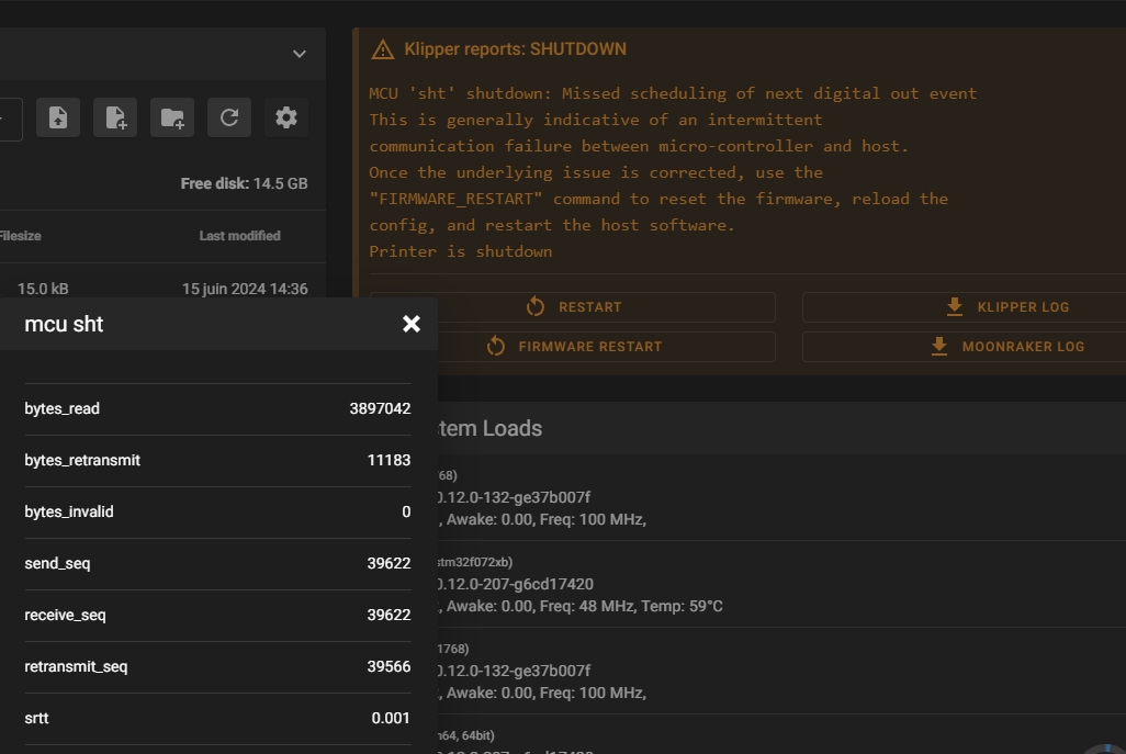 pingu balboa Vieux pseudal nul :( | Bon allez nouvelle bizarrerie, ça fait deux fois que je lance des impressions de quelques heures qui vont au bout normalement, mais j'ai des alertes de tension basse sur le pi, de throttle aussi, et au moment de lancer une nouvelle impression, lors du homing, j'ai un message d'erreur et ça plante. Je suppose que c'est lié au klipperscreen, car c'est arrivé seulement après son installation, il faudrait que je vérifie la tension de l'alimentation 5v. --------------- [TU]Les imprimantes 3D VORON (avec logs des HFRiens, voir FP) |