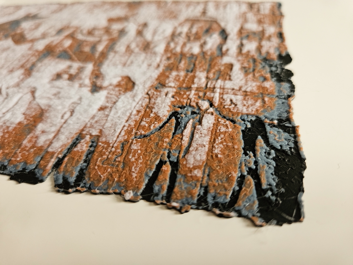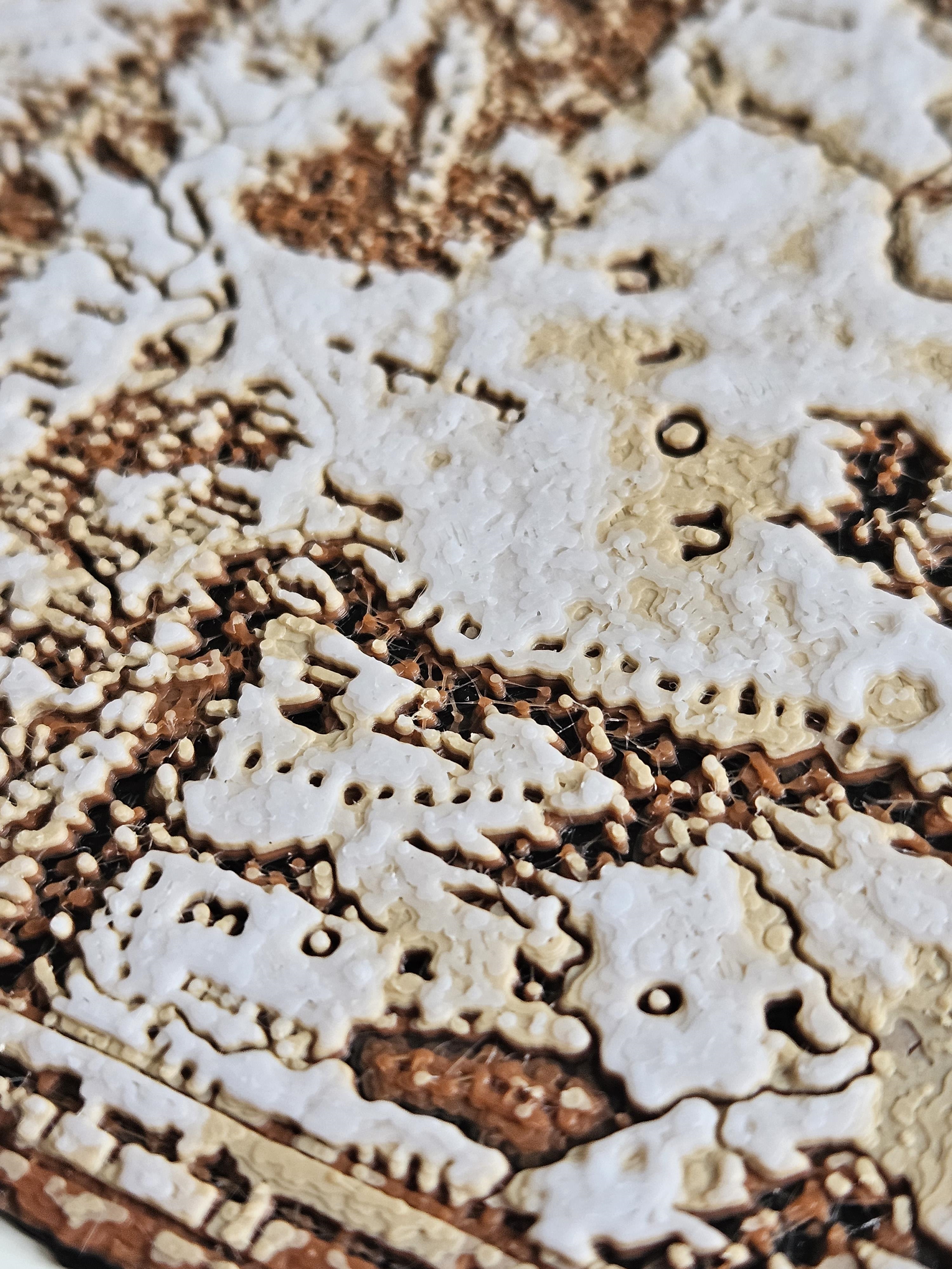 LibreArbitre La /root est longue | Les tests sur des petits surfaces ça ne rend vraiment pas honneur à HueForge (mais j'avais la flemme d'attendre 4-5h De près c'est pas très joli mais je cherchais surtout à rendre de la profondeur, et sur l'écorce du pourtour je trouve ça correct. Edit : Le problème vient surtout du gris : J'ai pas de gris à TD élevé (plus de 3, ce qui n'est pas très courant pour du gris) j'ai donc utilisé de l'Arianeplast Aluminium Métalique (TD de 4.8) donc forcément ça altère le rendu... Message édité par LibreArbitre le 31-01-2024 à 14:32:52 --------------- Hebergement d'images |