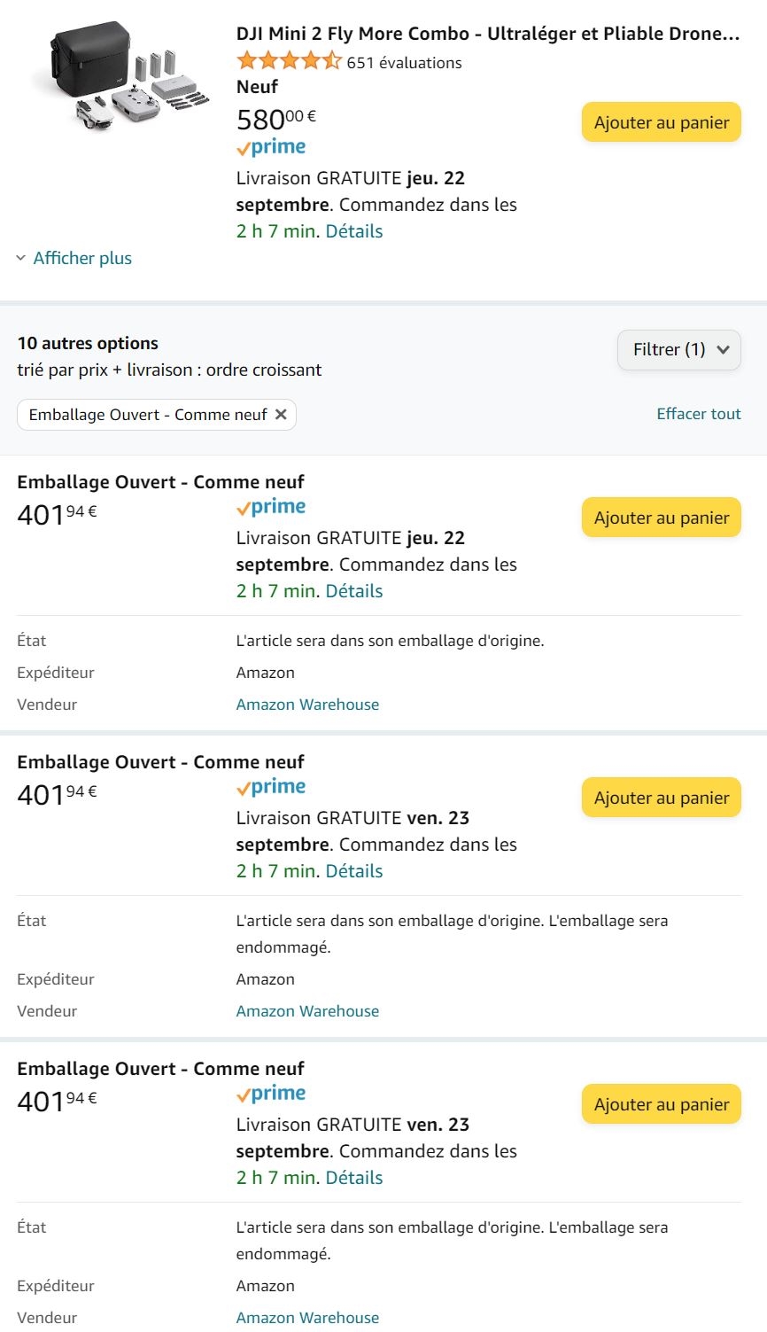 chimm | N'empêche la quantité d'offre est assez dingue, j'imagine que certains ont abusé des largesses d'Amazon et acheté un Mini 2 juste pour leurs vacances et ont renvoyé à la fin du séjour |
