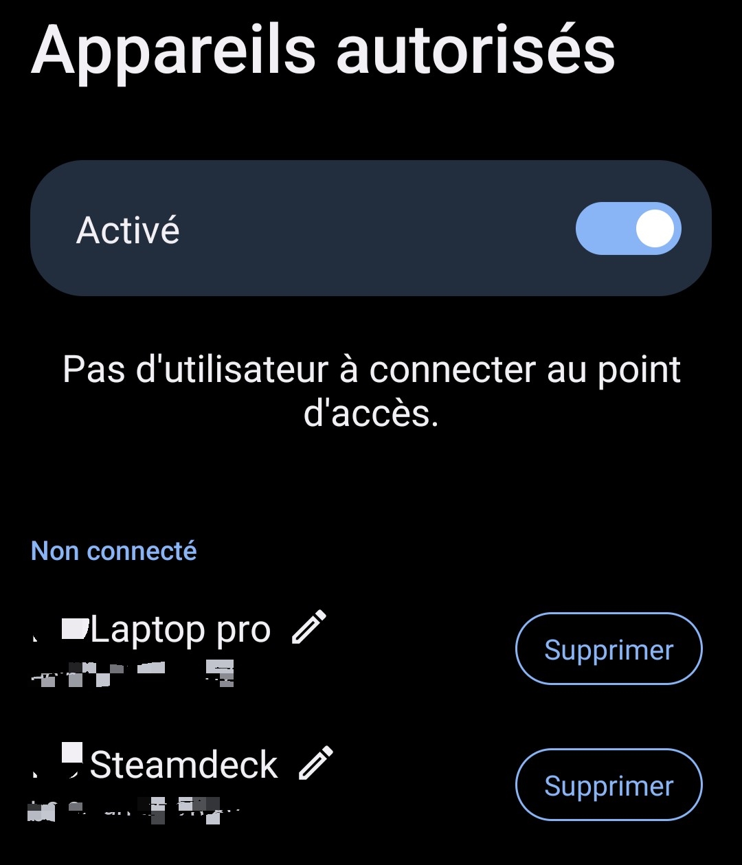 Il n'y a réellement rien de base sur ton smartphone permettant un minimum de contrôle ? Sur un Zenfone 8 d'Asus Android 13, dans la section Point d'accès et partage de connexion, il est possible d'activer un filtrage par appareil (après qu'ils se soient connectés une première fois): Mais point d'option permettant de limiter le volume de données ou le débit. Message édité par Scalpos le 30-12-2025 à 01:27:48 |