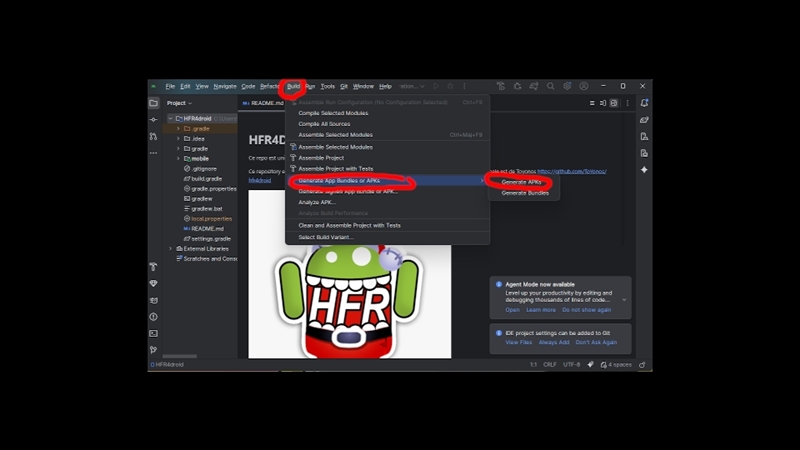 Comment recompiler et installer HFR4droid soi même pour ne pas installer sur son téléphone un logiciel qu'on sait pas d'où il vient. Installer Android Studio sur son PC. Aller sur https://developer.android.com/studio Le 15/11/2025, la page ressemble à ça, télécharger Android Studio Otter. https://rehost.diberie.com/Picture/Get/r/447919 Le fichier fait 1.3Go. L'installer. Choisir une installation standard, ça va télécharger d'autres trucs. Ouvrir Android Studio https://rehost.diberie.com/Picture/Get/r/447920 Choisir "Clone Repository" Cloner le repo https://github.com/antiseptiqueinco [...] 4droid.git https://rehost.diberie.com/Picture/Get/r/447921 3 commits ont été faits depuis la dernière version officielle pour pouvoir marcher sur un téléphone récent. Au premier chargement, c'est un peu long https://rehost.diberie.com/Picture/Get/r/447922 Builder l'apk: https://rehost.diberie.com/Picture/Get/r/447923 L'apk se trouve dans votre répertoire projet https://rehost.diberie.com/Picture/Get/r/447924 Il faut le transférer sur le téléphone. Une fois sur le téléphone, le sélectionner et l'installer