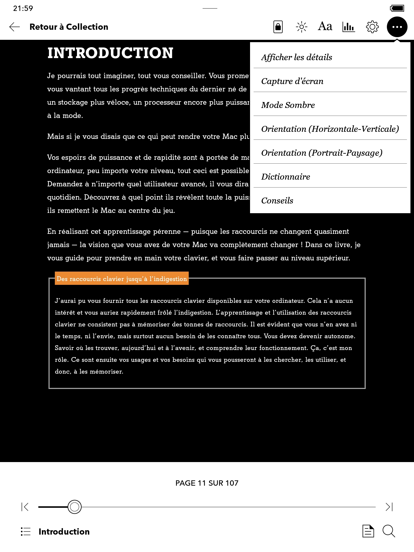 Leilu | Mon KOReader paramétré ressemble à ça.