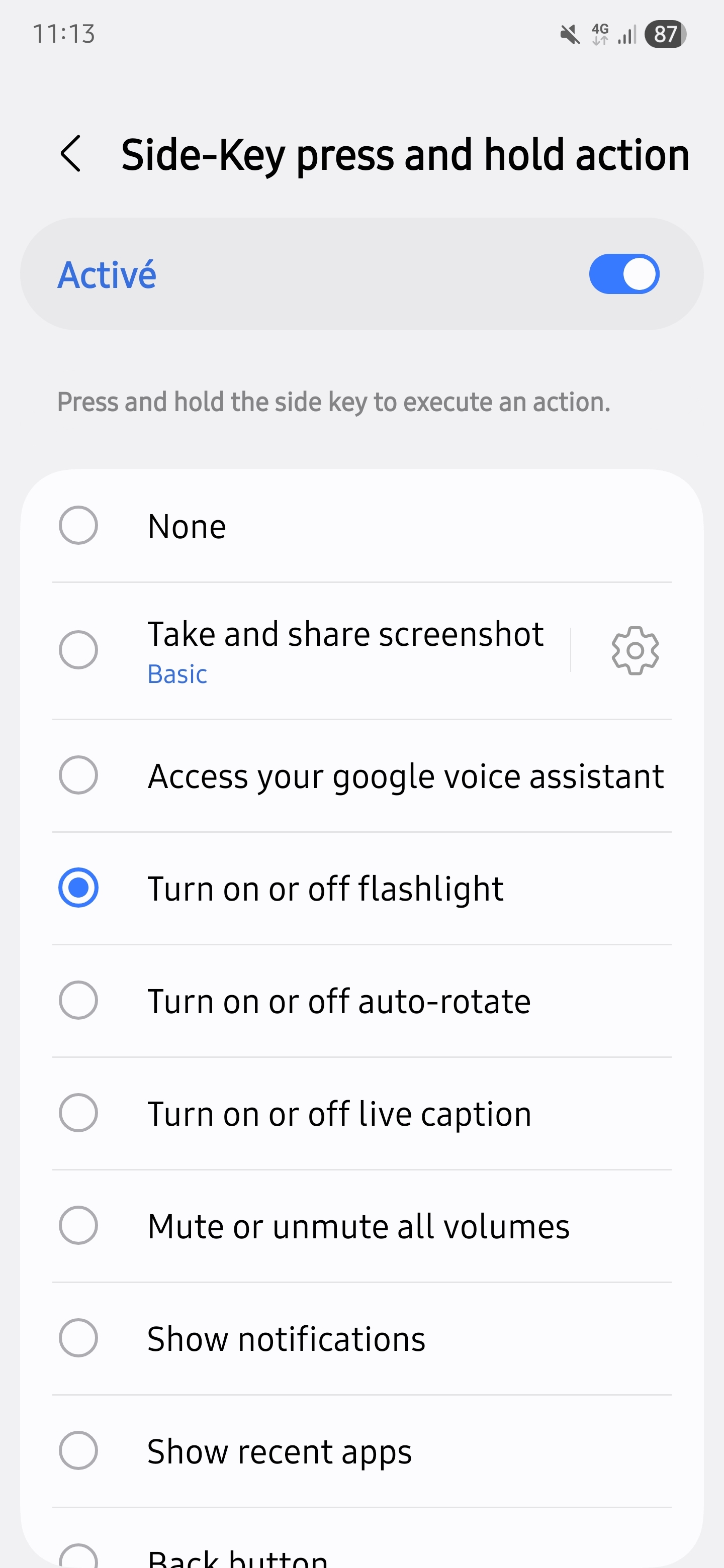 Puis pour Good Lock tu récupères Regi Star Et dans Regi Star, tu vas dans le menu "Side-Key press and hold action", tu l'actives et tu profites de l’option que tu veux : (J’utilise aussi la lampe torche en appui long) Message édité par Stylken le 30-10-2025 à 11:15:26 --------------- F' - [Achats / ventes] |