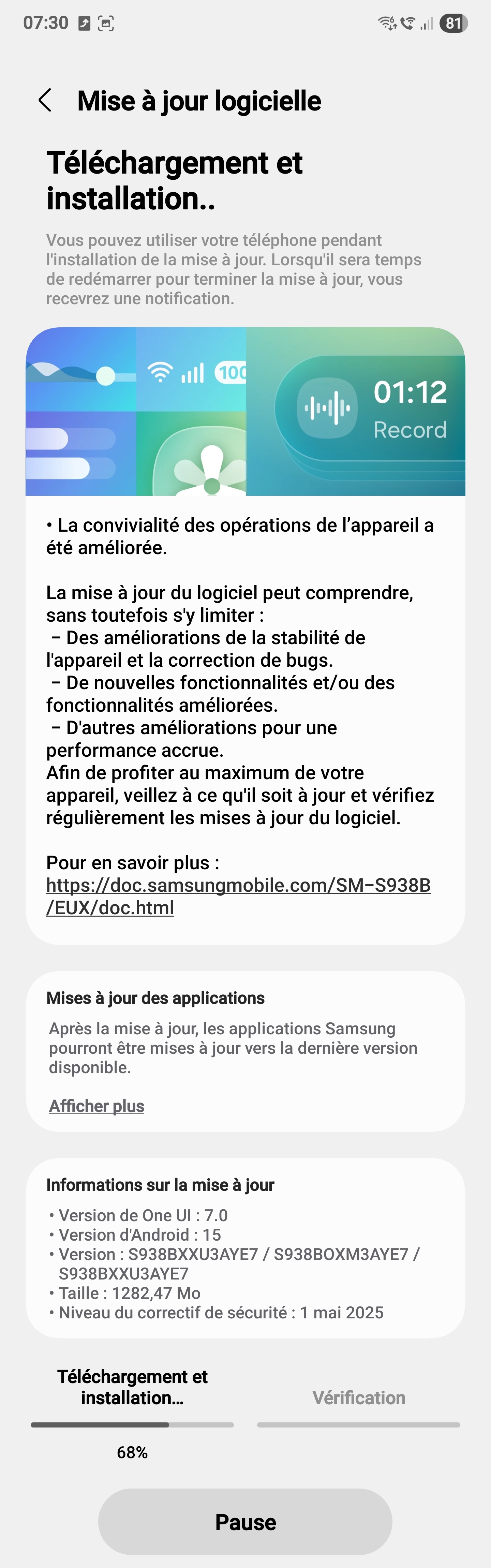 Stylken | Oui, installée ce matin, toujours en correctif sécurité au 1er mai Pas d'info sur la page de Samsung encore (côté S25U) : Message édité par Stylken le 02-06-2025 à 10:16:34 --------------- F' - [Achats / ventes] |