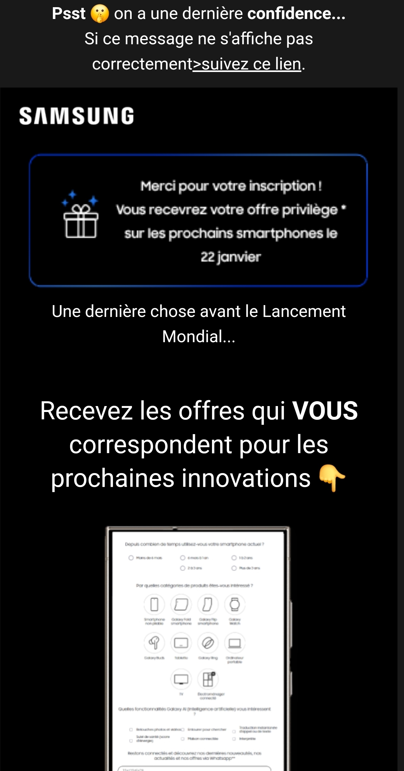 | Plus de sujets relatifs à : [T.U.] Samsung Galaxy S25/S25+/S25 Ultra : présentation le 22/01/25 | |