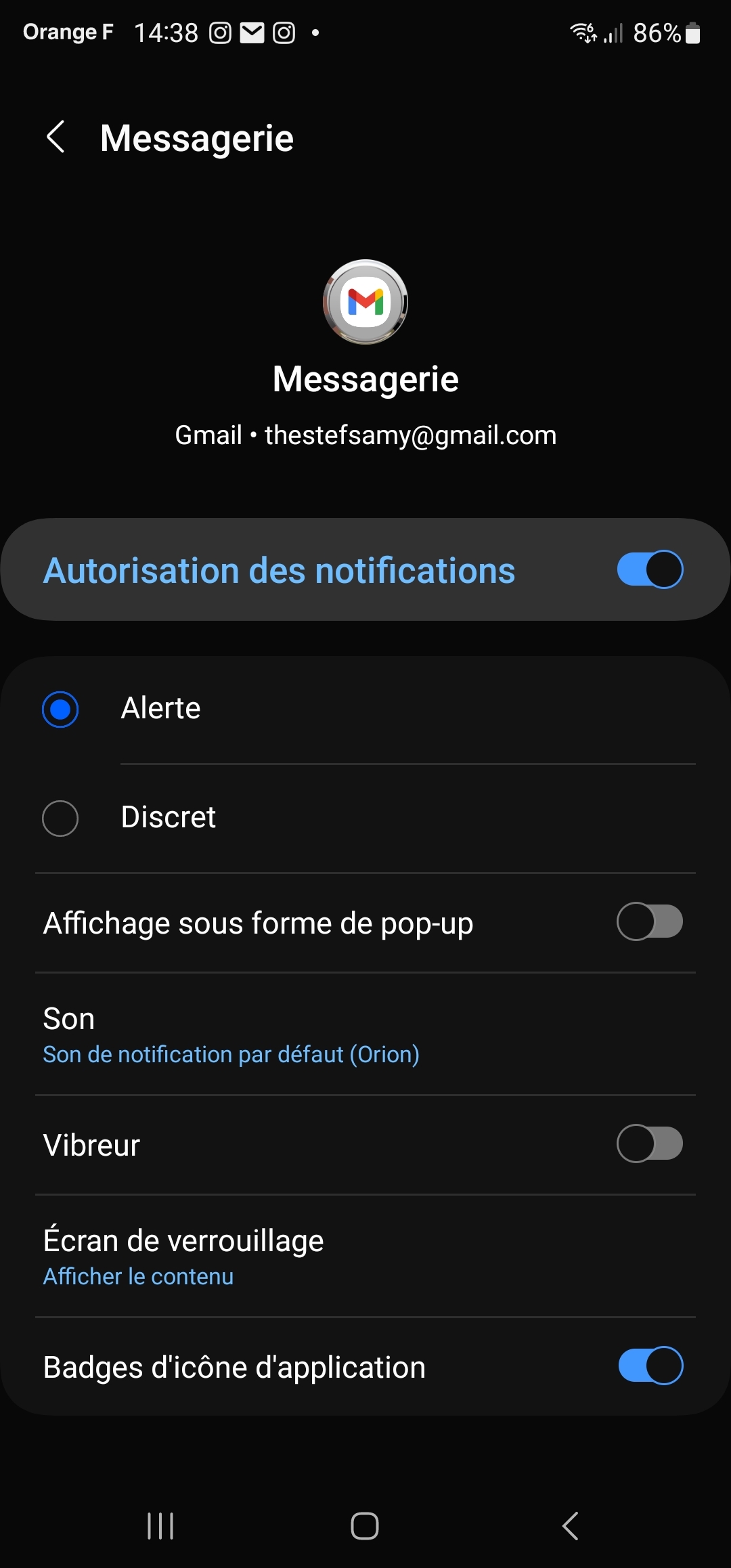 En fait le réglage present dans l'appli gmail doit être un "raccourci" vers la fonction de l'os je pense. --------------- Inutile d'essayer de me faire passer pour un con. J'y arrive très bien tout seul. §§§ On ne fait pas boire un âne qui n'a pas soif. |