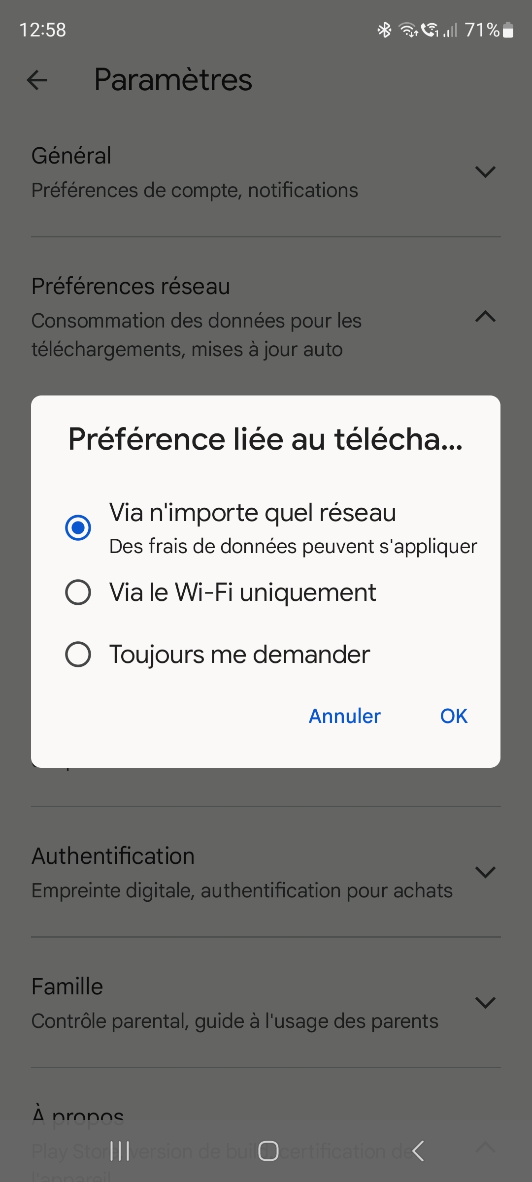 Bref, en tout cas ça semble assez récent ce comportement, je dirais moins d'un an, et pas moyen de sélectionner une option dans les paramètres pour faire un choix clair et net afin de télécharger comme on veut en wifi ou 4/5G pour le moment, bizarrement. Bien que l'option était réglable pendant un temps : https://rehost.diberie.com/Picture/Get/r/182295 elle n'était pas "respectée" car le wifi était systématiquement exigé lors du dl : https://rehost.diberie.com/Picture/Get/r/182606 Sûrement un point que Samsung ne manquera pas de corriger dans une future maj... |