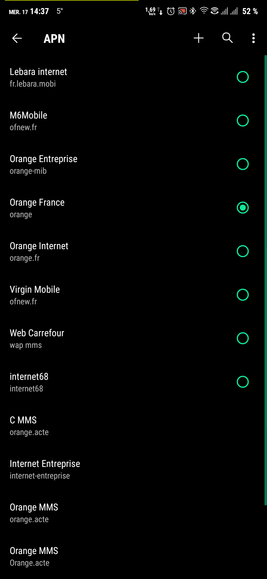 heparti | Ok merci pour le conseil. Ça a également marché avec un apn mms que j'ai ajouté, et redémarrage du mobile. Je conserve néanmoins ton idée qui cas où ce que j'ai fait ne fonctionne plus |