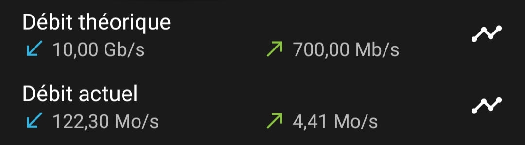 fabien Vive la super 5 ! | Vous avez quoi comme matos pour vos débits fibre? je suis entre 500 et 650 mbps en download, en up je suis stable à 670 mbps. (mini 4k)