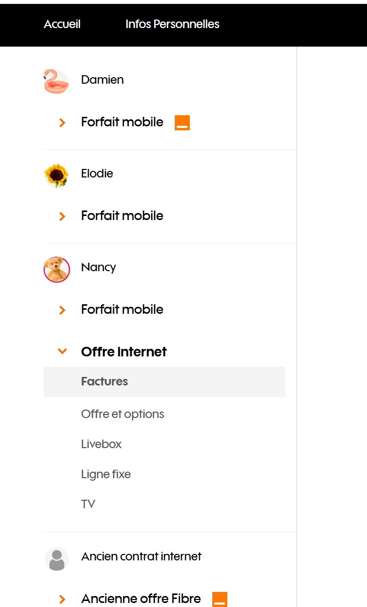 DiB91 Bwaaaaaaah | Bonjour messieurs, Savez-vous si Free, comme le fait Orange offre la possibilité de parrainer, de rattacher au même foyer, et surtout, de laisser gérer des comptes à un compte principal ? Ma belle-mère est... comment dire... "technophobe" et ne veut pas "s'emmerder avec tout ça"... J'aimerai donc la faire passer chez Free (elle est fibrée à son logement), pour qu'elle bénéficie d'un décodeur TV de bien meilleure qualité, et surtout identique au mien pour que je puisse la guider quand c'est nécessaire. Dans mon espace client Orange, j'ai accès aux contrats de ma femme et de ma belle-mère qui m'ont donné procuration. Je peux donc y gérer leurs factures, abonnements et options : Existe-t'il un système similaire chez Free ? Merci à vous Message édité par DiB91 le 04-04-2025 à 10:20:59 --------------- La DiBerie | Rehost | Link |