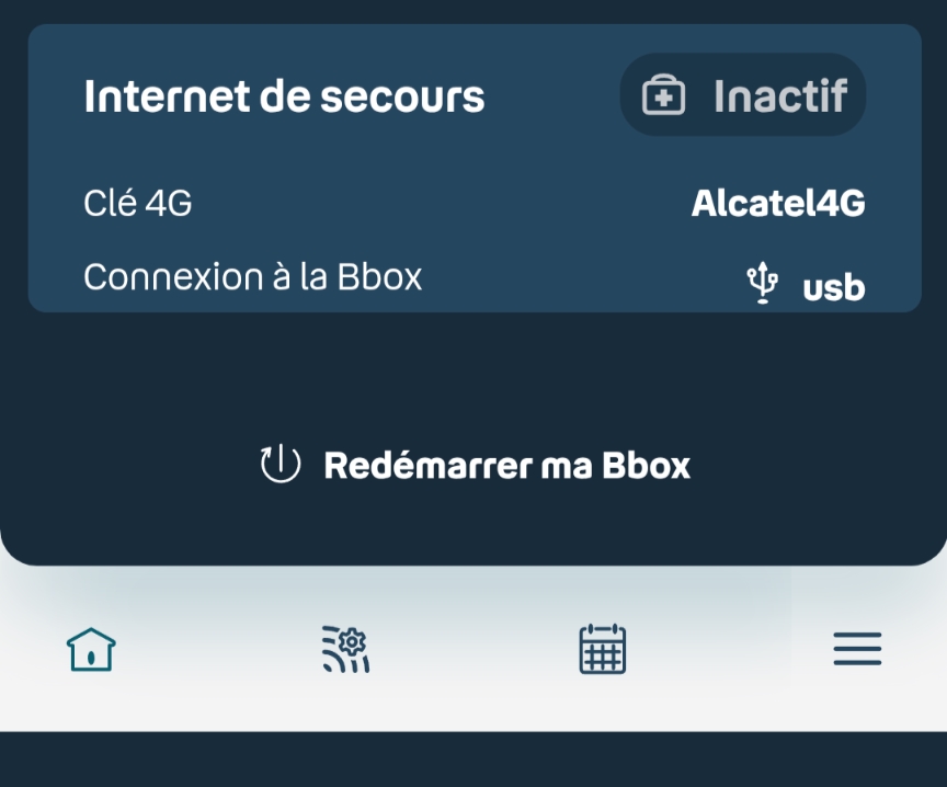 Pas avec ton propre matos. Mais tu as l'option internet garantie, un truc du genre, qui le permet (c'est gratuit avec les dernières offres ultym). Tu fais la demande, ils t'envoient un galet 4g à brancher sur la box, et l'internet de secours est géré automatiquement si le lien fibre déconne. Bon là tout de suite ça ne t'aide pas j'en conviens Message cité 1 fois Message édité par rootsayen le 23-12-2024 à 14:40:11 --------------- "Being solitary is being alone well; being alone luxuriously immersed in doings of your own choice, aware of the fullness of your own presence rather than the absence of others." |