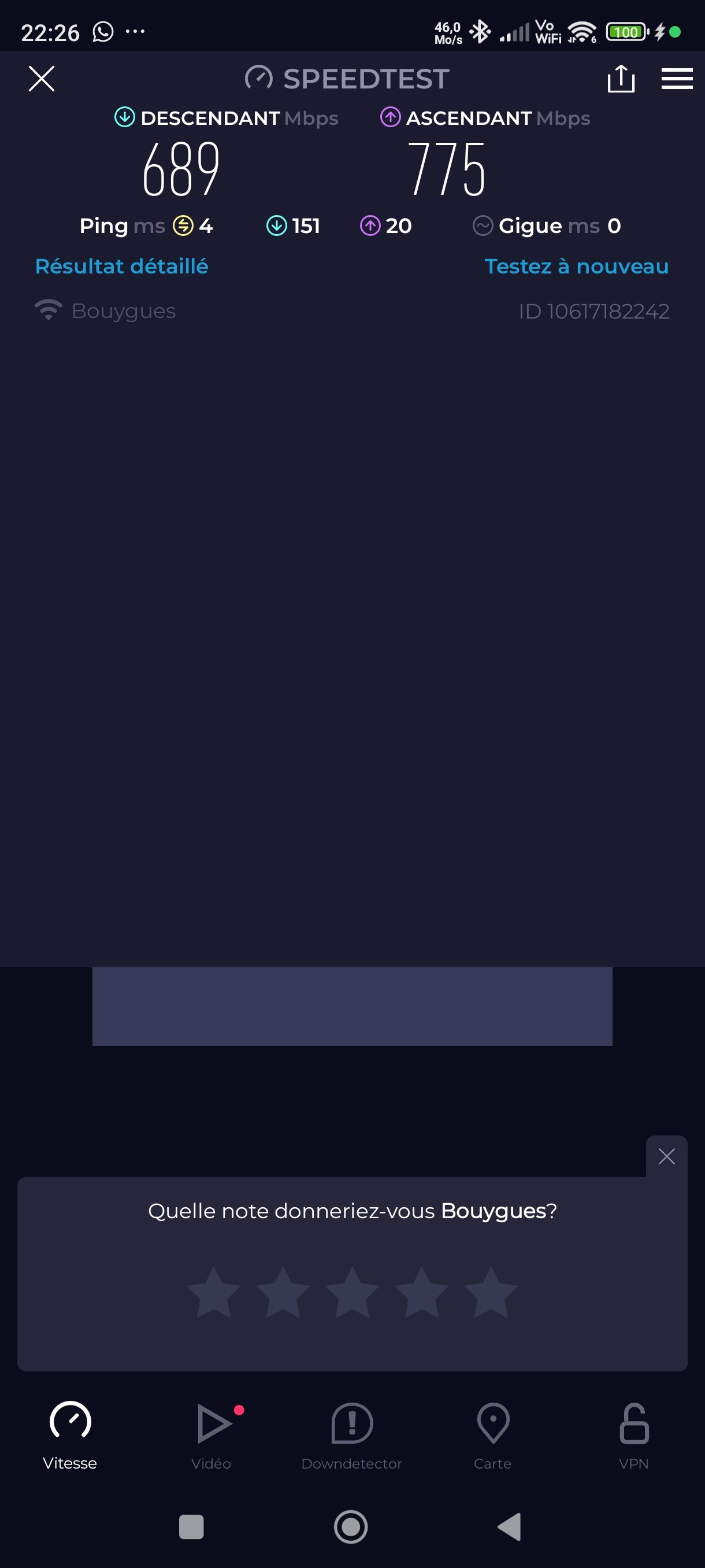 absolumentpasbultom It's not a loop, it's a spiral | A vu de pif, je dirais du wifi 6 En RJ sur speedtest tu tapes 0.5 ou 1 ms de ping J'obtiens ça perso Message cité 1 fois Message édité par absolumentpasbultom le 06-01-2025 à 22:28:29 --------------- Les HDD c'est dans les NAS :fou: |