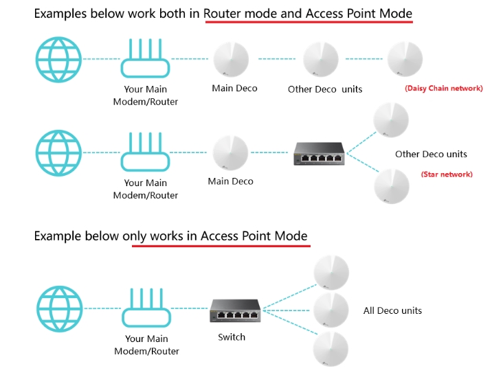 Grinch | c'est quoi l'intérêt de mettre 4 deco sur ta box ? aucun le but c'est d'avoir un maillage pour un bonne couverture, donc un au cul de la box et les autres dans les autre pièces ( chambres / bureau etc ) laisse tous les modules en AP sinon tu seras en double NAT derrière ta box ( routeur derrière un routeur ) ta pas besoin de switch supp, les modules se maillent entre eux en wifi mais si tu as un câblage rj45 dans les pièces c'est encore mieux de brancher les modules dessus ça marchera direct sans autre réglages Message édité par Grinch le 24-10-2023 à 18:16:02 --------------- Feedback |